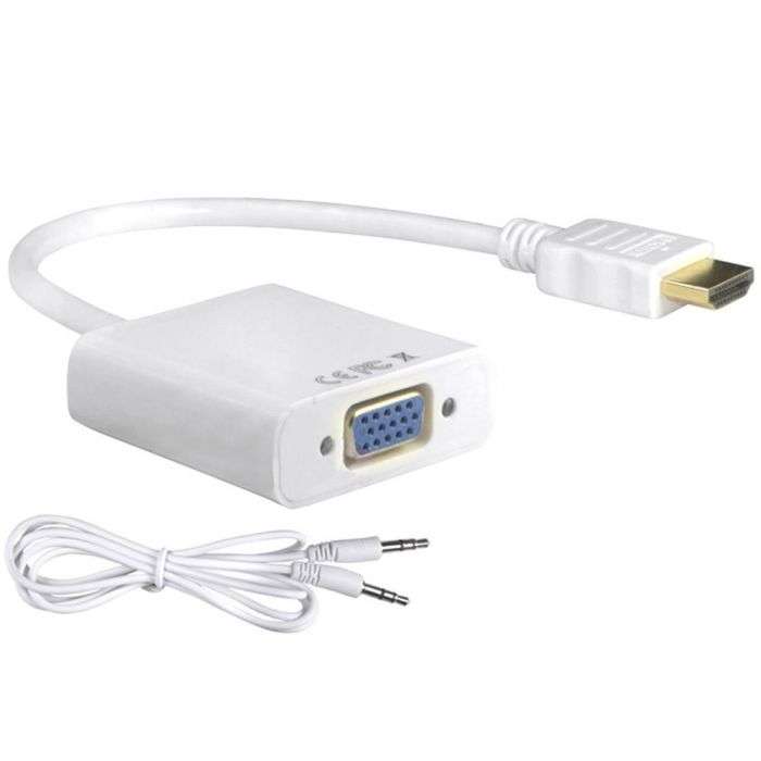 This is a simple HDMI to VGA converter which is used to convert the HDMI input to VGA output to connect to VGA capable monitor. It also comes with audio cable to transmit audio signals. HD/HQ Video Transmitting. Compact and lightweight. It also supports audio conversion.